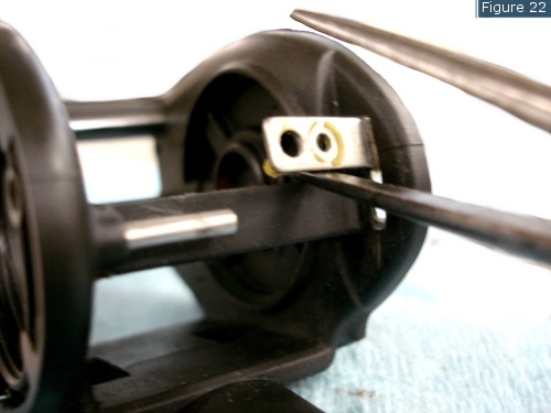 To correct the saggy thumb bar problem 1) Using the long Phillips screwdriver remove the single screw to remove the thumb bar. Access will come from the front of the reel (See fig 21)